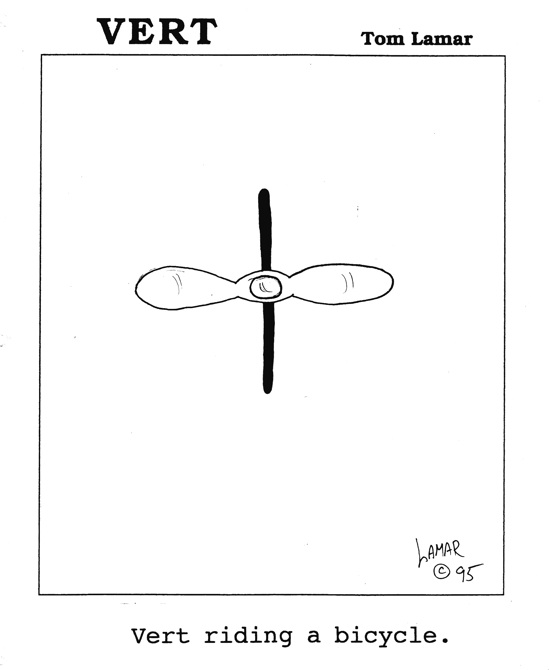 Vert riding a bicycle.